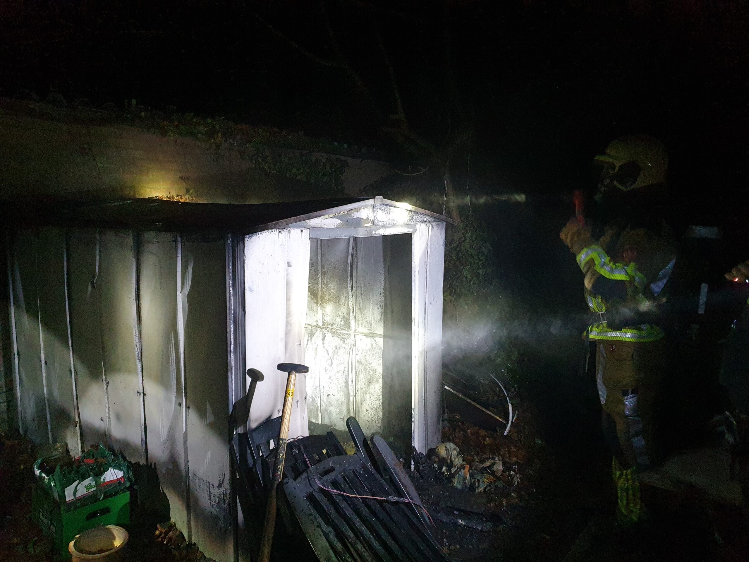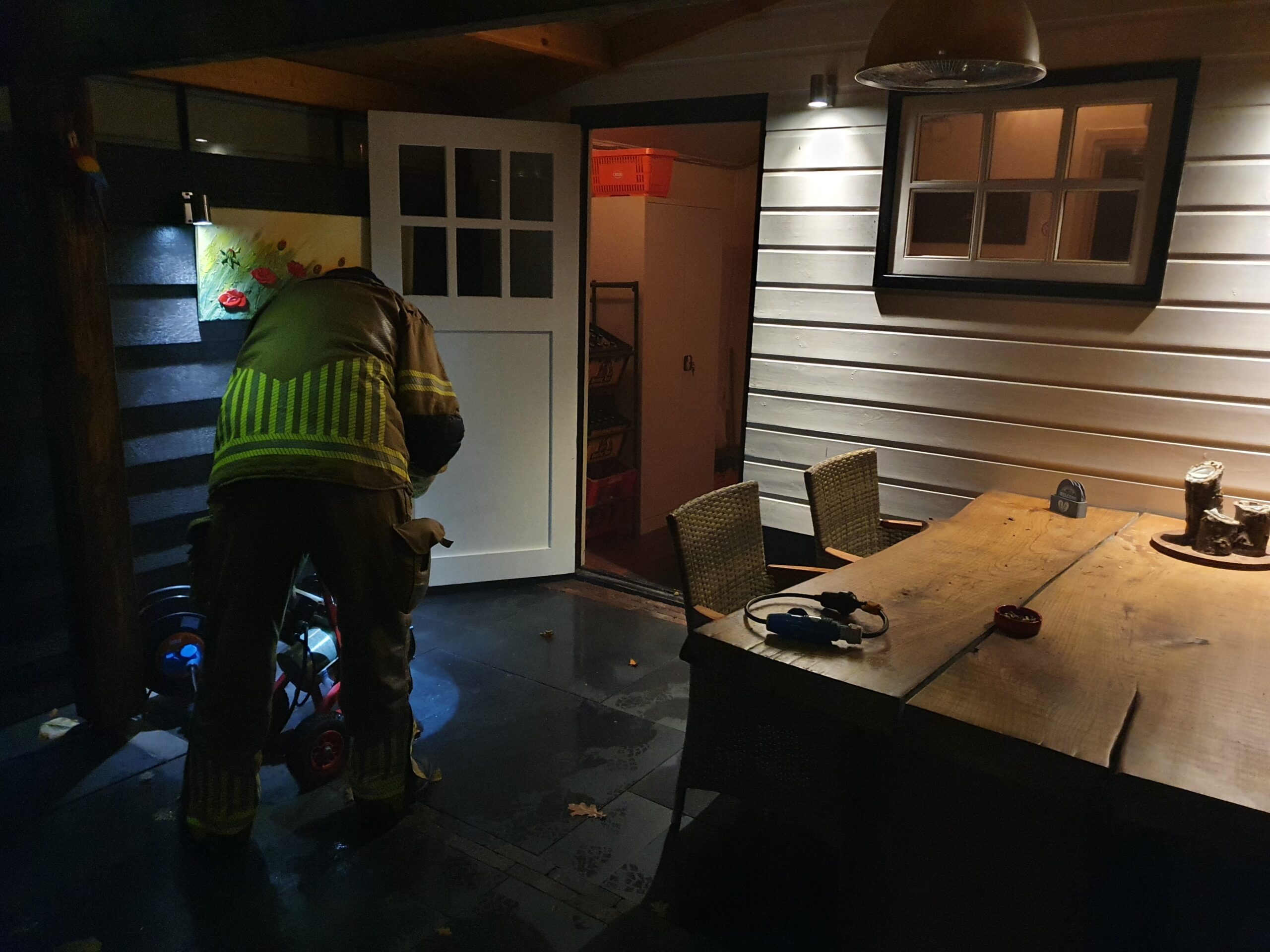 Eenmaal ter plaatse hebben we de brand snel kunnen blussen met een HD-straal, en verdere uitbreiding kunnen voorkomen. De bewoners van de schuur die in brand stond waren niet thuis. In de schuur van de buren was lichte rookontwikkeling, deze hebben we geventileerd.