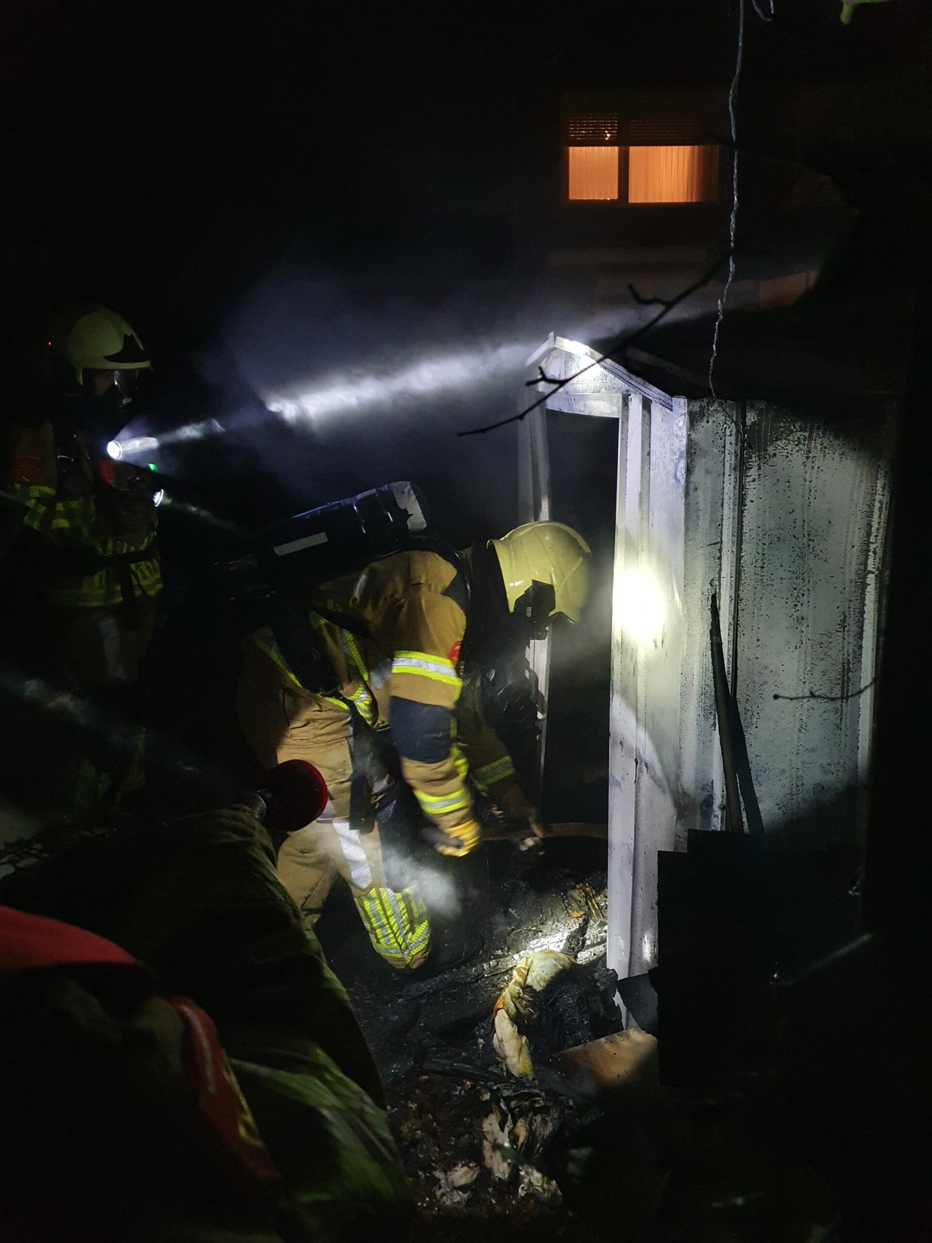Tijdens het aanrijden kregen we te horen dat er is opgeschaald naar brand bijgebouw, de brand was overgeslagen naar een schuurtje/opslaghok.