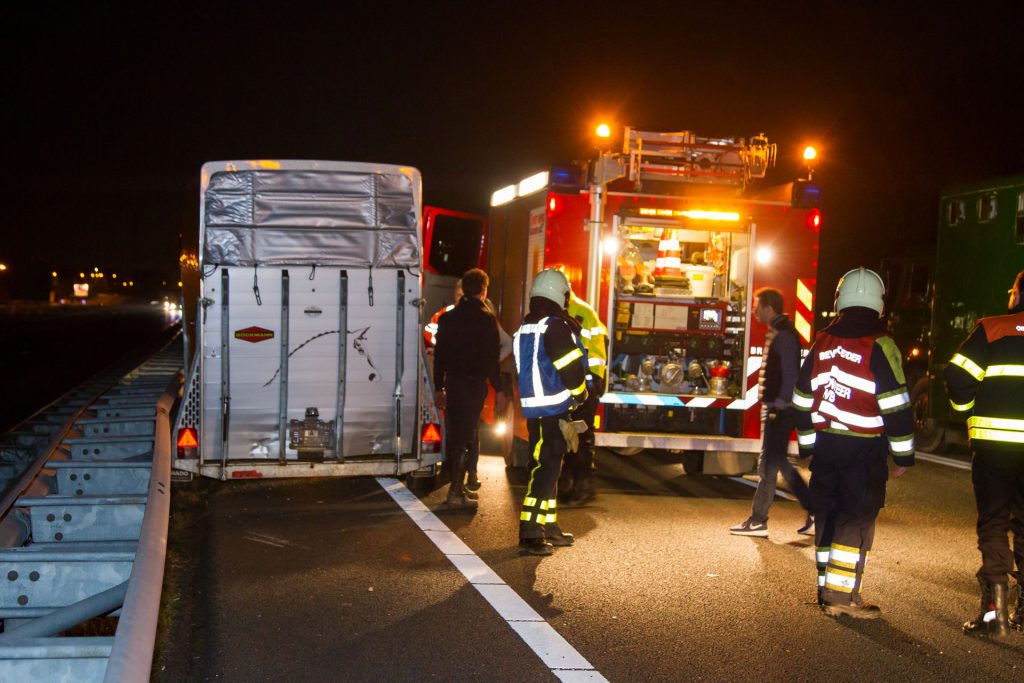 OOSTERHOUT – Op 7 april 2015 om 21:05 werd brandweerteam Made verzocht te rijden naar de A59 R – Maasroute 97,4 te Oosterhout NB. Hier was een ongeluk gebeurd tussen twee voertuigen waarvan een voertuig een paardentrailer met twee paarden bij zich had. Gelukkig mankeerde de paarden niets, en ook de bestuurders van de voertuigen kwamen met de schrik vrij